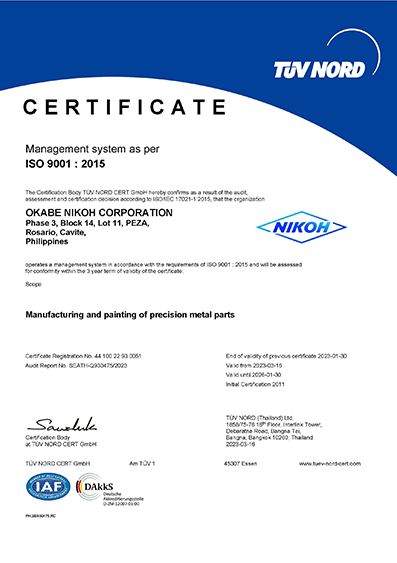 We, at the OKABE NIKOH CORP. are committed in providing environmental friendly quality precision metal parts to our customer.
